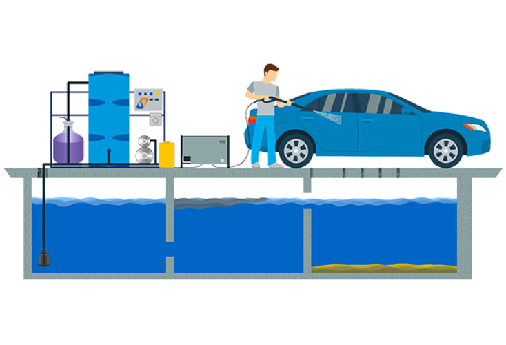 Принцип организации работы автомойки на оборотном водоснабжении: